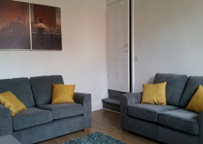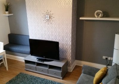 This is a beautiful 2-bedroomed, centrally heated property , in a very convenient location and only a short bus journey to the city centre. Ideal for a couple, students or professionals looking for a good quality home with modern decor. This fully renovated house features an inviting, modern living room with 2 grey comfortable fabric sofas and a 42in TV. There is a extendable dining table and chairs with an additional 2-seater alcove seat in the dining area next to the front window. Upstairs there is a good sized, modern bathroom with bath and shower over the bath. There are two good sized double bedrooms with fitted wardrobes and comfortable beds. In the basement there is a laundry area with useful storage and a washing machine. The private garden has a patio table and chairs for your leisure when weather permits.